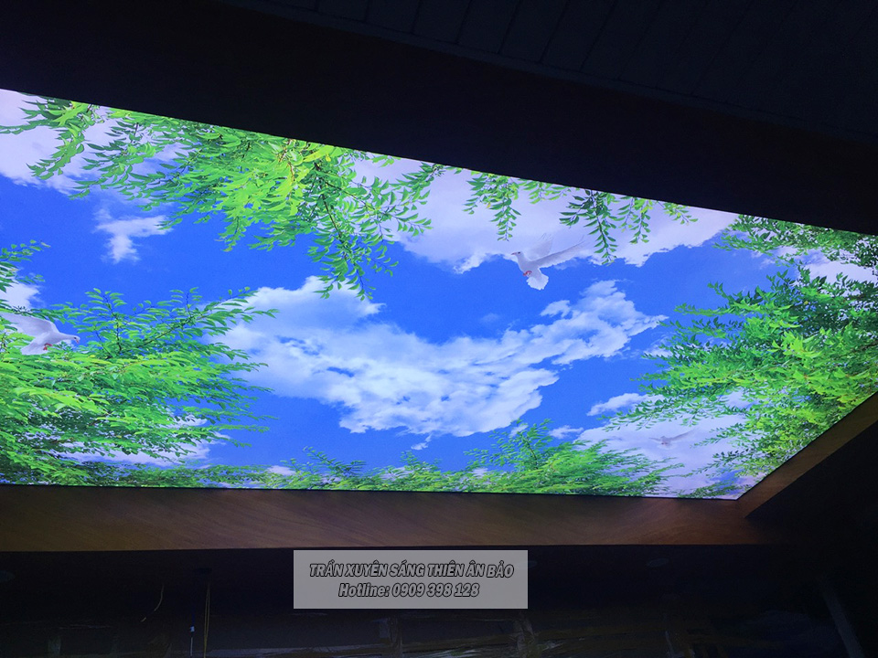 Tấm trần xuyên sáng được gắn vào hệ thống khung xương. Tấm được để nguyên thủy hoặc in họa tiết (tùy vào mục đích công trình) có độ co giãn nên sau gắn tạo thành mặt phẳng. Dưới sự chiếu sáng của hệ thống led, những hình ảnh của tấm trần trở nên chân thực và giúp chiếu sáng cho không gian bên dưới.
